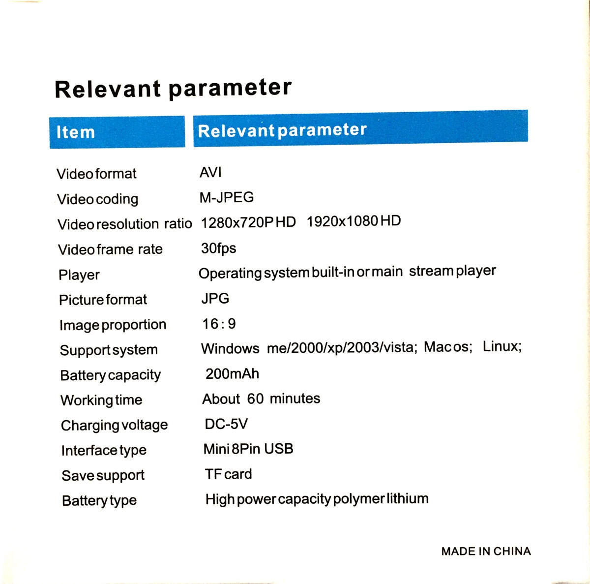 Υποστηριζόμενη κάρτα μνήμης: TF 32G (δεν περιλαμβάνεται) class 10 ή παραπάνω